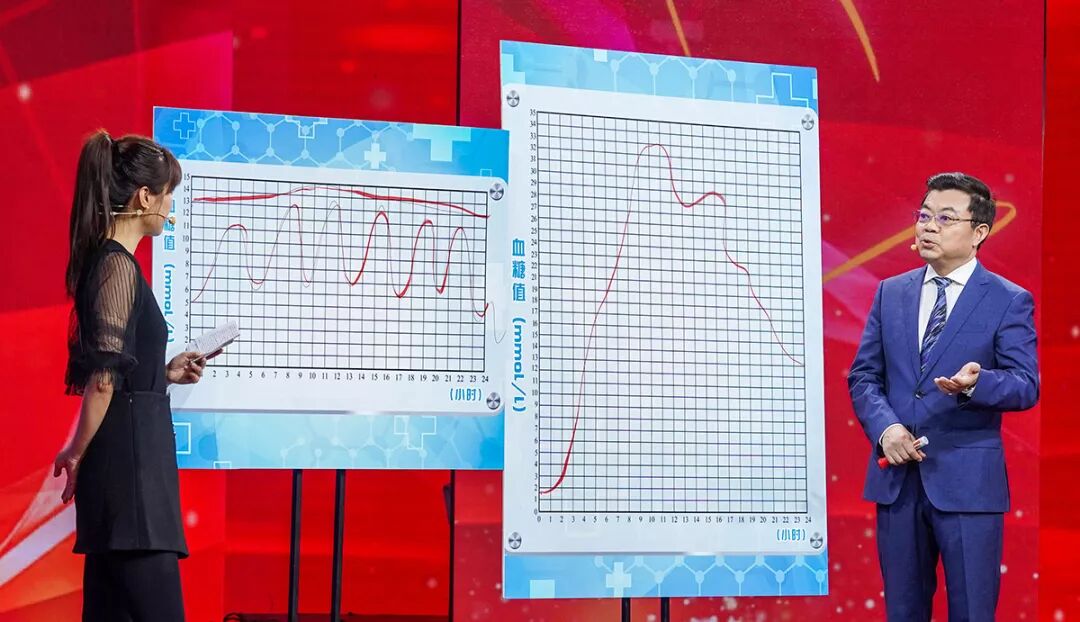 本期节目请到的是北京医院内分泌科主任郭立新教授,他有非常丰富的治疗糖尿病的经验。在现场,他通过不同的“血糖曲线”向糖友们传递了一个重要信息:高血糖有引发并发症的危险但血糖忽高忽低比持续高血糖危害更大!